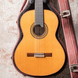 Este modelo está diseñado con un diapasón de 20 trastes, tapa de cedro con acabado Laca nitro y unos clavijeros Schaller Grand Tune Classic Hauser.